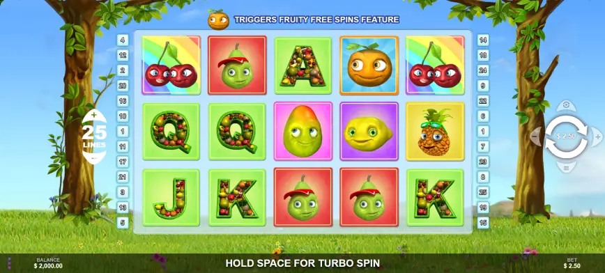 Al hablar de Fruity Friends, nos adentramos en un mundo de frutas animadas que promete una experiencia de juego vibrante y llena de color. En este entorno, los jugadores son transportados a un campo exuberante, alejándose del bullicio de la vida urbana para disfrutar de un aire fresco y la compañía de sus nuevos amigos frutales. Esta tragamonedas no solo es visualmente atractiva, sino que también ofrece una narrativa que invita a los jugadores a relajarse mientras se adentran en un entorno despreocupado y alegre. ¿Quién no se sentiría tentado por una experiencia tan deliciosa?